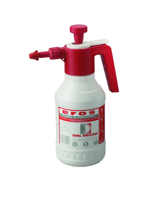 Pre-compression spray pump with manual action for non aggressive liquids. This is used in the garden to spray insecticides, pesticides, fungicides and in the home for general spraying as needed. The reservoir is made in recyclable plastic polyethylene. The spray head has a large pump cylinder for easy pressurising of the reservoir and a large pump action knob. The grip is angled for comfortable use without tiring the wrist. The stainless steel spring closure for the liquid has a rapid release mechanism. The pump can be equipped with a plastic or brass nozzle with spray adjustment from mist to stream.
